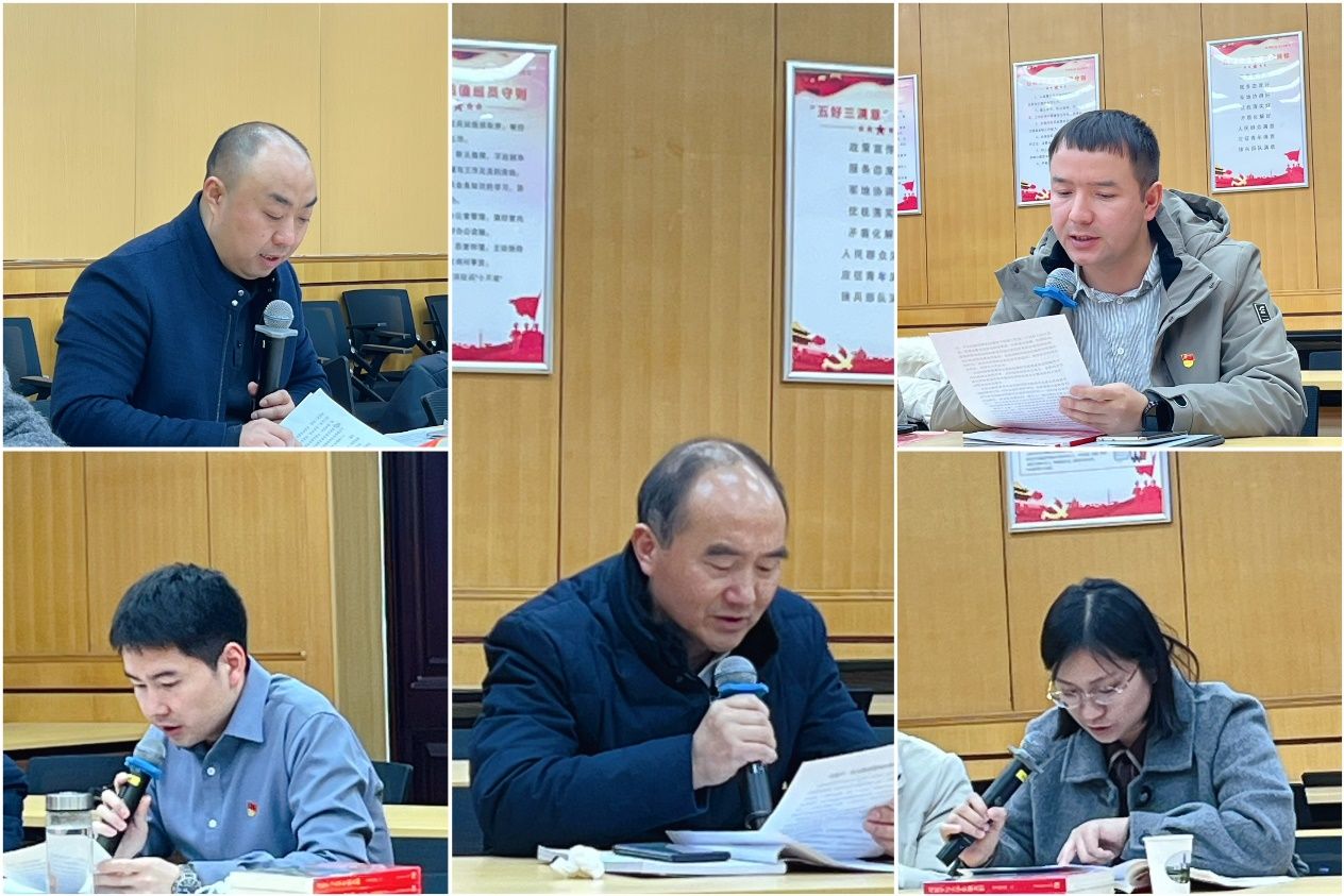在深入开展理论学习环节,由各位党员同志领学习近平总书记最新重要讲话精神、《中国共产党章程》以及《中国共产党纪律处分条例》等。朱虹领学了《习近平:深入推进党的自我革命》,杨子云领学了《习近平总书记关于全面加强党的纪律建设的重要论述》,左思领学了《习近平:必须坚持守正创新》,康丽婷领学了《习近平:扎根中国大地磨续中华文脉厚植学术根基 为推进马克思主义中国化时代化作出更大贡献》,郭小义领学了中共中央办公厅印发《中国共产党不合格党员组织处置办法》,于苏甫江·玉山领学了《中国共产党章程》第八章党的纪律检查机关。