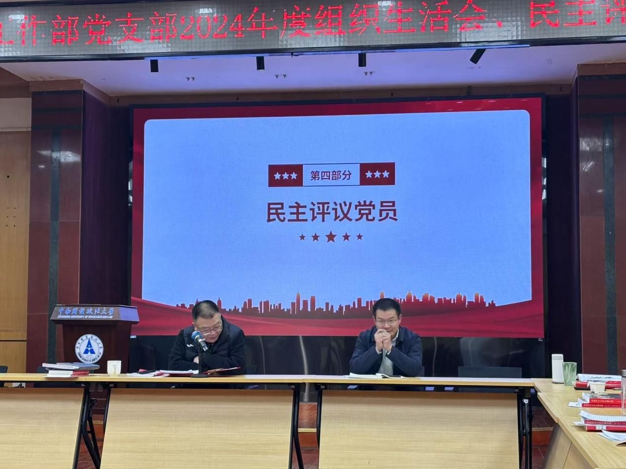 (通讯员 刘畅 周潇 摄影 康丽婷)为深入学习贯彻习近平新时代中国特色社会主义思想,全面贯彻落实党的二十届三中全会精神和全国教育大会精神,1月10日下午,党委学生工作部党支部在文潭楼411组织召开2024年度组织生活会、民主评议党员,会议由党支部书记王前哨主持。