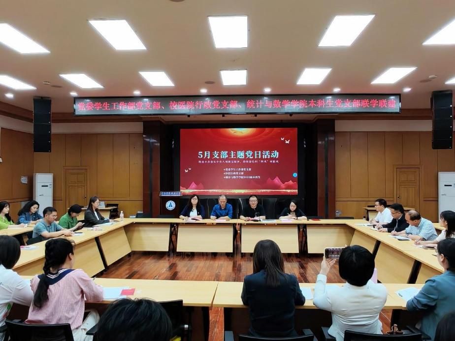 (通讯员 周潇 摄影 刘湘)为进一步发挥党建引领作用,切实增强支部党建工作的针对性和实效性,5月23日下午,党委学生工作部党支部、医院行政党支部、统计与数学学院本科生2022级党支部联合开展主题为“锲而不舍落实中央八项规定精神,持续深化纠‘四风’树新风”的5月主题党日活动。党委学生工作部部长王前哨、医院院长黄之勤、医院党委书记刘晓燕、统计与数学学院党委书记梁娜参加活动,本次活动由党委学生工作部党支部书记王前哨主持。
