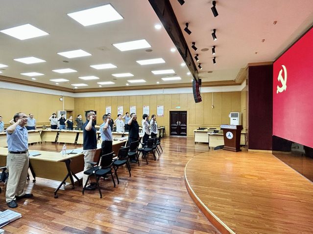 在庄严肃穆的氛围中,全体党员在领誓人刘祚衡同志的带领下重温入党誓词。