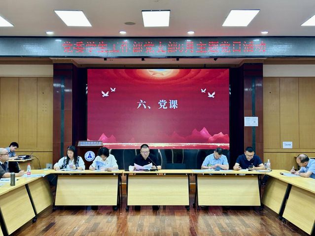 学习党章环节,刘微同志领学了《中国共产党章程》第四章“党的地方组织”。理论学习环节,会议聚焦当前重要学习任务,由多位同志分别领学:范献龙同志领学了习近平总书记关于《加快建设教育强国》重要论述,并传达了《深入贯彻中央八项规定精神学习教育工作提示》(六)(八)核心要求;穆帆同志领学了习近平总书记致复旦大学建校120周年的贺信;胡万松同志领学了《习近平关于加强党的作风建设论述摘编》;祝颖同志领学了《党的十八大以来深入贯彻中央八项规定精神的成效和经验》;刘祚衡同志领学了《锲而不舍落实中央八项规定精神,以优良党风引领社风民风》。