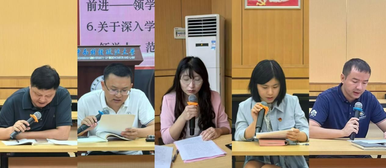 在专题学习部分,何红娟、余金聪、刘青、于苏甫江·玉山、范献龙等5位同志先后领学《整治形式主义为基层减负若干规定》《中国共产党基层组织选举工作条例》《中国共产党普通高等学校基层组织工作条例》《关于严肃换届纪律加强换届风气监督的通知》《习近平总书记给全国特岗教师代表的回信》等内容。范献龙指出,作为高校教育工作者,我们要深入学习贯彻习近平总书记关于学习教育的重要讲话和重要指示精神以及习近平总书记给全国特岗教师代表重要回信精神,把教育家精神转化为执教的理想和追求,把“师德师风”融入日常工作和实践,以赤诚之心育时代新人。
