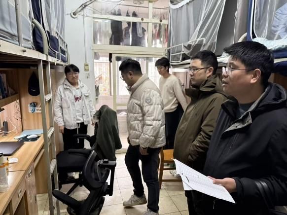 将宿舍打造为安全管理和暖心服务的前沿窗口。学院领导带领辅导员、班级导师深入学生宿舍,开展拉网式安全隐患排查,重点检查用电安全、消防设施、卫生状况及违规电器使用情况,对发现的问题现场提出整改要求并跟踪督办,坚决消除安全隐患。走访中,老师们与学生围坐谈心,细致了解假期生活、返校适应情况及新学期规划,耐心倾听他们在学业、生活、就业、人际交往等方面的困惑与诉求,能当场解决的立即回应,需协调解决的详细记录并跟进反馈。老师们反复叮嘱安全事项,鼓励同学们相互包容、共同营造温馨和谐的宿舍氛围,切实增强学生的归属感与幸福感。同时,结合春季安全重点,向全体学生强调宿舍用电规范、防范电信诈骗、外出交通与人身财产安全等事项,学生均表示会严格遵守。