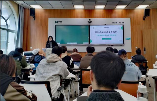 同时,曾老师围绕公考报考流程、考试体系展开详细解读,重点分享行测高效备考策略与申论写作核心要点,带领同学们现场试做公考真题,直观感受近年考试内容的命题趋势与变化方向。互动答疑环节,曾老师针对同学们关心的岗位选择、备考规划等实际问题逐一细致解答,现场交流氛围热烈浓厚。