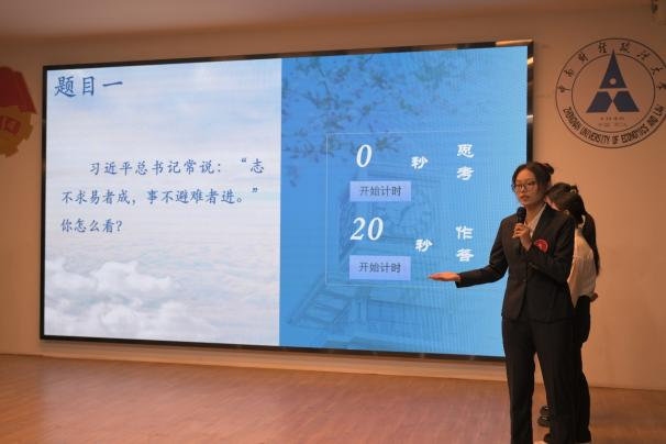 在抢答环节,选手们围绕公共管理领域热点问题与结构化面试经典考题展开激烈角逐。王心宇结合专业所学深刻诠释“志不求易者成,事不避难者进”;骆曼围绕思政教育“金课”阐述教师引领与全民参与;李颖就公众号建设提出调研需求、借鉴经验、借助推广等务实思路,条理清晰、贴合实际。随后的趣味抢答环节涵盖党的建设、节气常识等内容,现场观众踊跃参与,气氛轻松热烈。