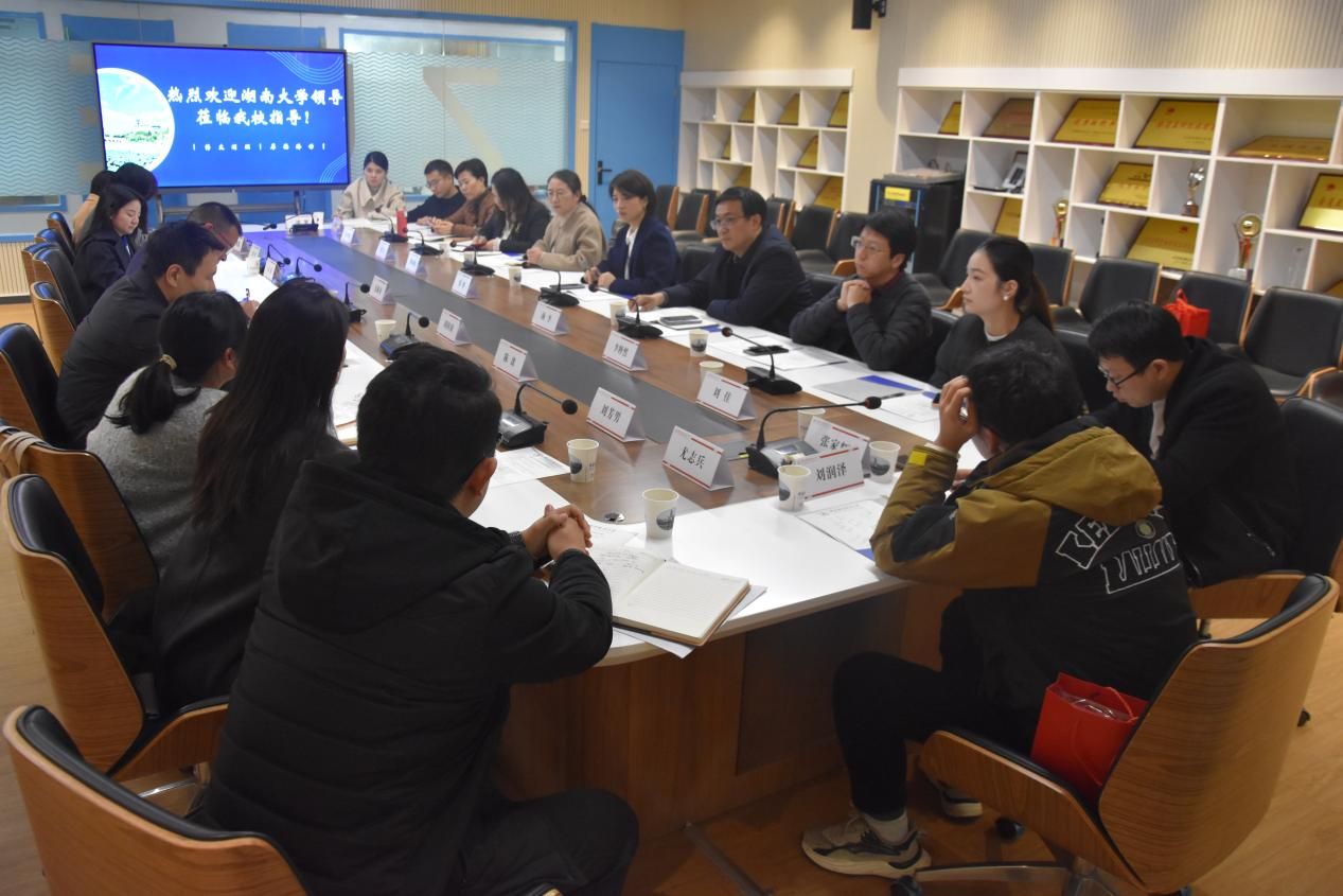 范献龙向湖南大学一行的到来表示热烈欢迎,对我校人才培养模式、学生骨干队伍建设以及“一站式”学生社区驿站特色项目作了详细介绍。熊雅对我校的热情接待表示感谢。双方与会领导结合分管工作实际,就AI赋能学生管理、学风校风建设、辅导员队伍建设等议题进行了深入的交流。